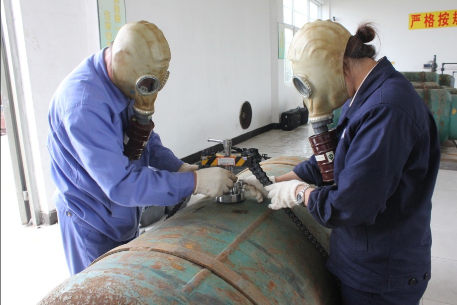 9名員工參與了此次演練。兩人一組,從新舊空氣呼吸器和防化服的正確穿戴及使用、泄氯堵漏工具的使用以及氯瓶拆裝三個(gè)項(xiàng)目進(jìn)行技術(shù)演練。演練從實(shí)戰(zhàn)出發(fā),參演人員各司其職,按照“正確、迅速”的原則,圓滿地完成了本次演練任務(wù),最后公司運(yùn)行部副經(jīng)理對(duì)參演人員按標(biāo)準(zhǔn)進(jìn)行了評(píng)分考核并發(fā)表總結(jié)講話。