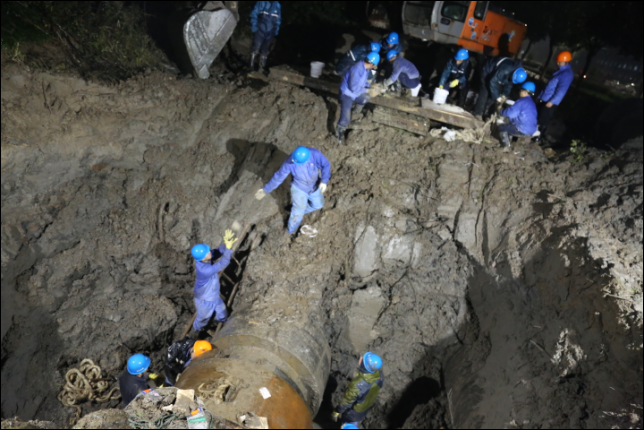 1月17日晚,紹興柯橋濱海供水公司搶修人員在寒夜中冒雨搶修D(zhuǎn)N1000一期原水管。據(jù)了解,該管線位于興濱路與越北路交叉口以南,是公司輸送原水的重要管線,公司根據(jù)工業(yè)區(qū)供水情況,在不影響企業(yè)用水的前提下展開搶修工作,經(jīng)過開挖、電焊等工序,連續(xù)工作12小時后,直至晚上9點原水管搶修完成。